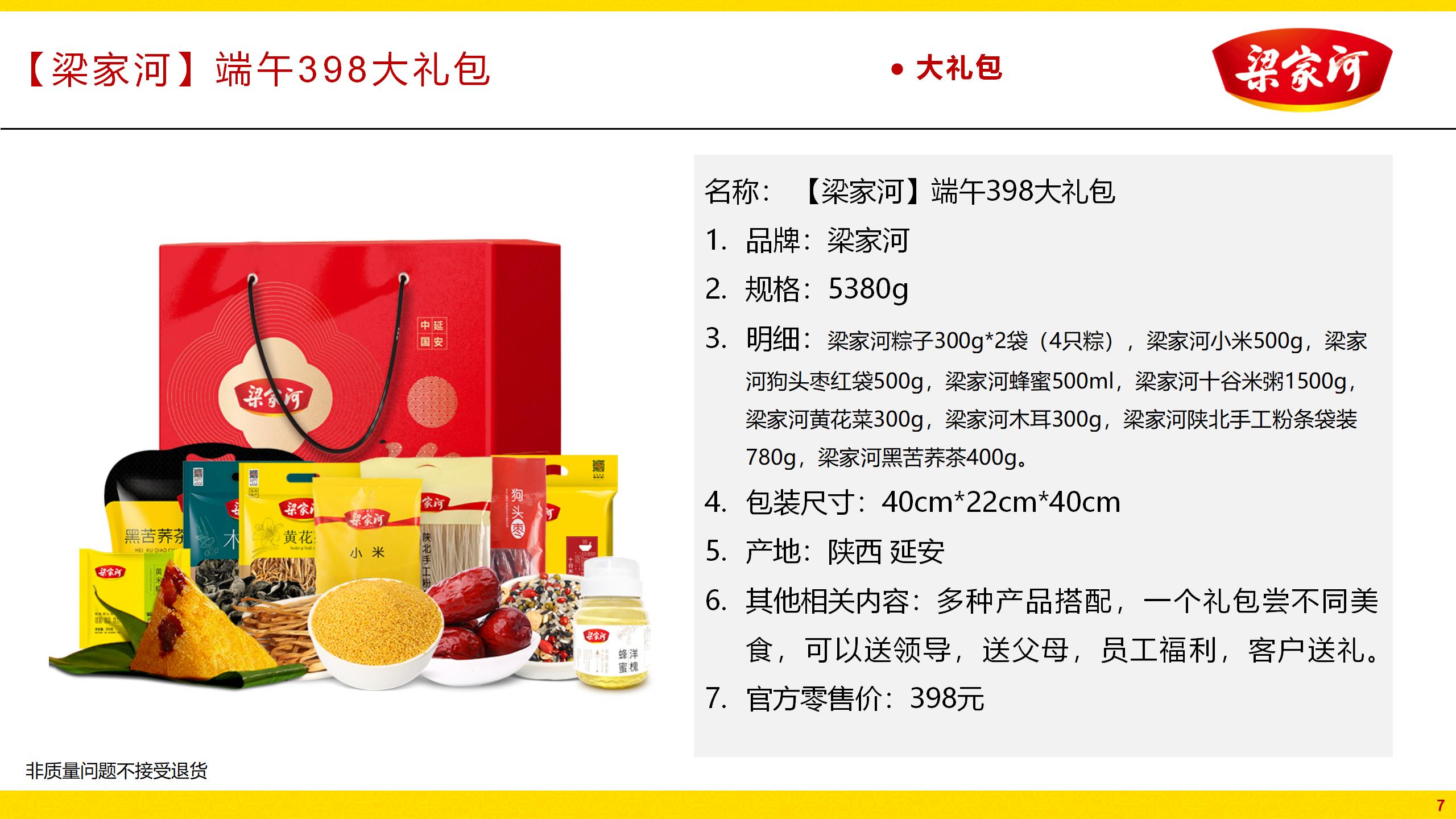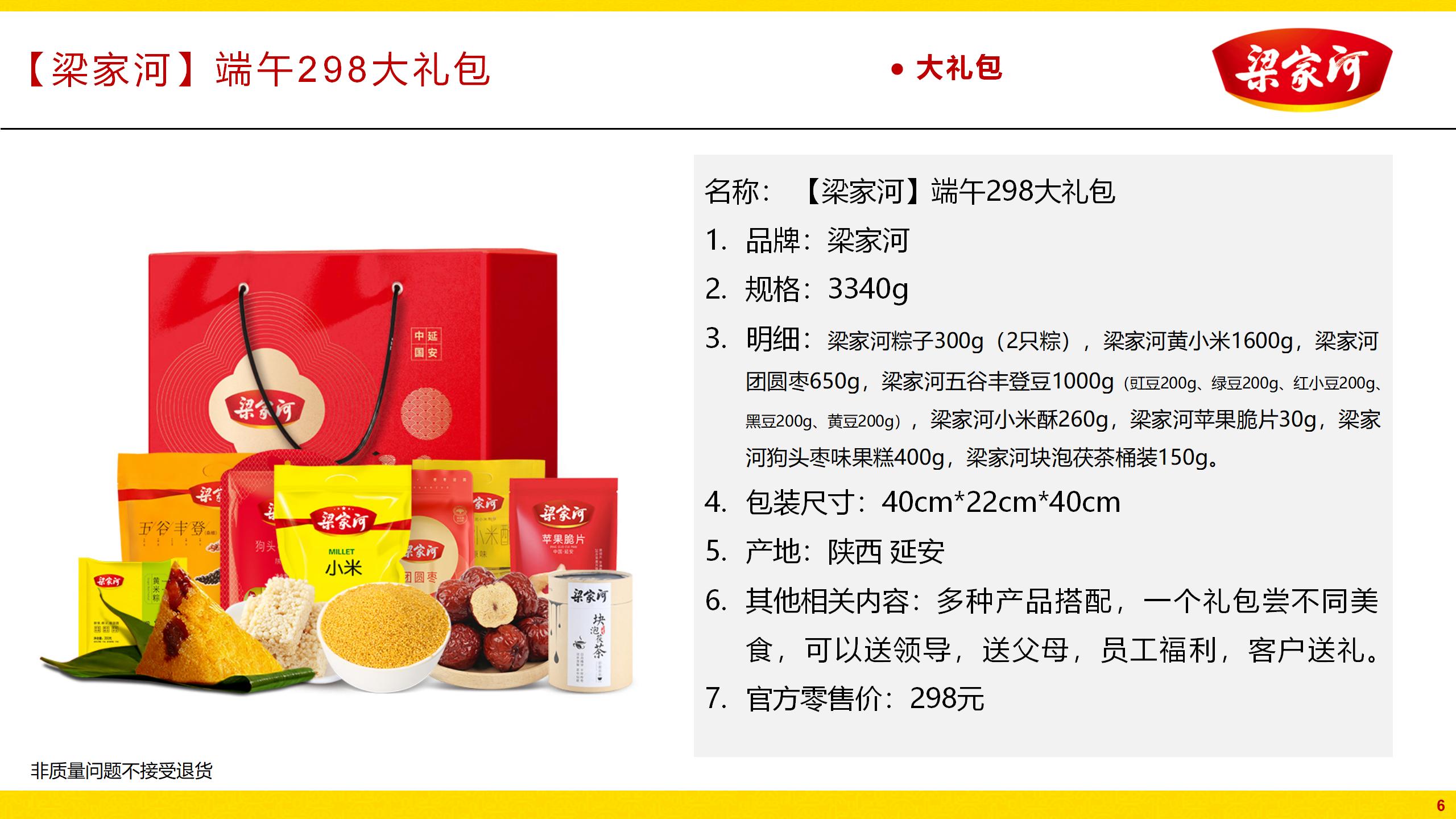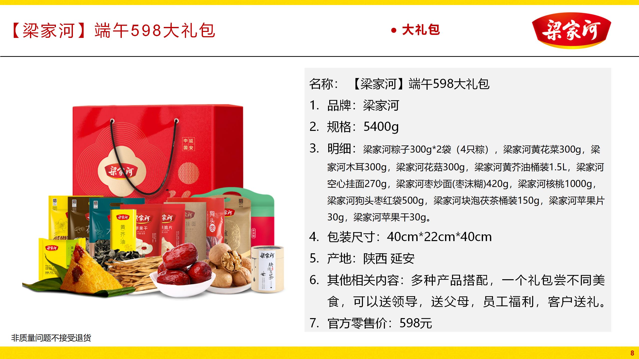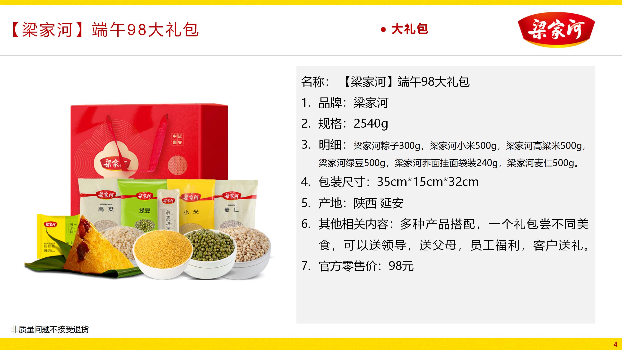 为省去搭配烦恼,梁家河精心打造多款端午大礼包,以黄米粽为核心,科学组合、高性价比呈现。从适合员工福利、日常分享的98元礼包,到适配亲友馈赠的398元礼包,一站式配齐端午心意,简约大气的民俗礼盒设计,送礼有面,质感满满。